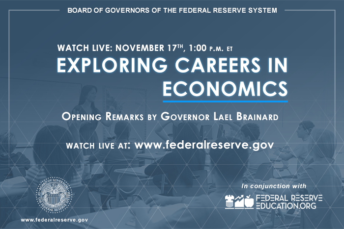Federal Reserve Board and Federal Reserve Education (FRE) will welcome students nationwide via webcast to discuss career opportunities and diversity in economics and to learn about career paths within the Federal Reserve System. Opening Remarks by Governor Lael Brainard, administrative governor of the US Federal Reserve.