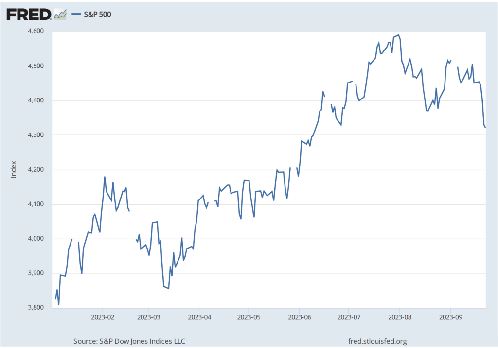 In advance of the September meeting, some other members of the FOMC had also signaled that the committee was unlikely to increase its target. For instance, an article in the Wall Street Journal quoted Susan Collins, president of the Federal Reserve Bank of Boston, as stating that: “The risk of inflation staying higher for longer must now be weighed against the risk that an overly restrictive stance of monetary policy will lead to a greater slowdown than is needed to restore price stability.” And in a speech in August, Raphael Bostic, president of the Federal Reserve Bank of Atlanta, explained his position on future rate increases: “Based on current dynamics in the macroeconomy, I feel policy is appropriately restrictive. I think we should be cautious and patient and let the restrictive policy continue to influence the economy, lest we risk tightening too much and inflicting unnecessary economic pain.”