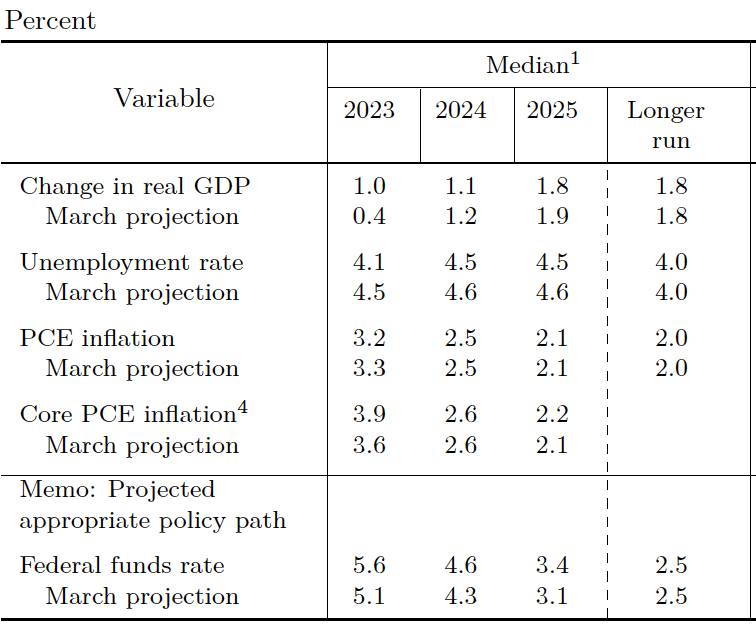 The FOMC releases the SEP four times per year. The most recent SEP before the September meeting was from the June meeting. The table below shows the median of the projections, or forecasts, of key economic variables made by the members of the FOMC at the June meeting. Note the second row from the bottom, which shows members’ median forecast of the federal funds rate.