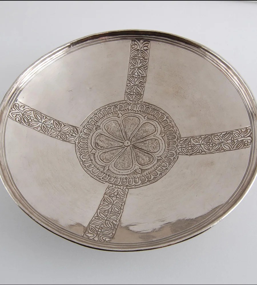 Where did the rulers of the various English kingdoms get the silver to mint pennies, given that there were no known silver mines operating during this period? Searching for clues, Jane Kershaw and her colleagues analyzed the composition of the silver used in the pennies. Surprisingly, the silver turned out to have the same composition as silver used in the Byzantine Empire in the eastern Mediterranean. Because in this period there was little to no trade between England and the Byzantine Empire, Kershaw and colleagues believe that the silver was likely obtained from melting silver objects, like the plate shown above, obtained from trade with the Byzantine Empire in earlier periods.