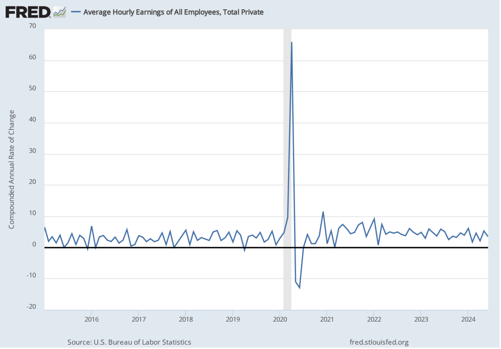 The 1-month rate of wage inflation of 3.5 percent in June is a significant decrease from the 5.3 percent rate in May, although it’s unclear whether the decline was an additional sign that the labor market is weakening or reflected the greater volatility in wage inflation when calculated this way.