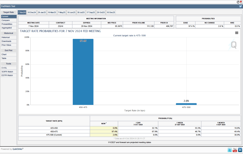 What effect will this jobs report likely have on the FOMC’s actions at its final two meetings of the year on November 6-7 and December 17-18? Some investors were expecting that the FOMC would cut its target for the federal funds rate by 50 basis points at its next meeting, matching the cut at its September meeting. This jobs report makes it seem more likely that the FOMC will cut its target by 25 basis points.