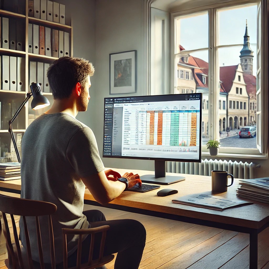 Image generated by GTP-4o of someone in Germany working on a spreadsheet