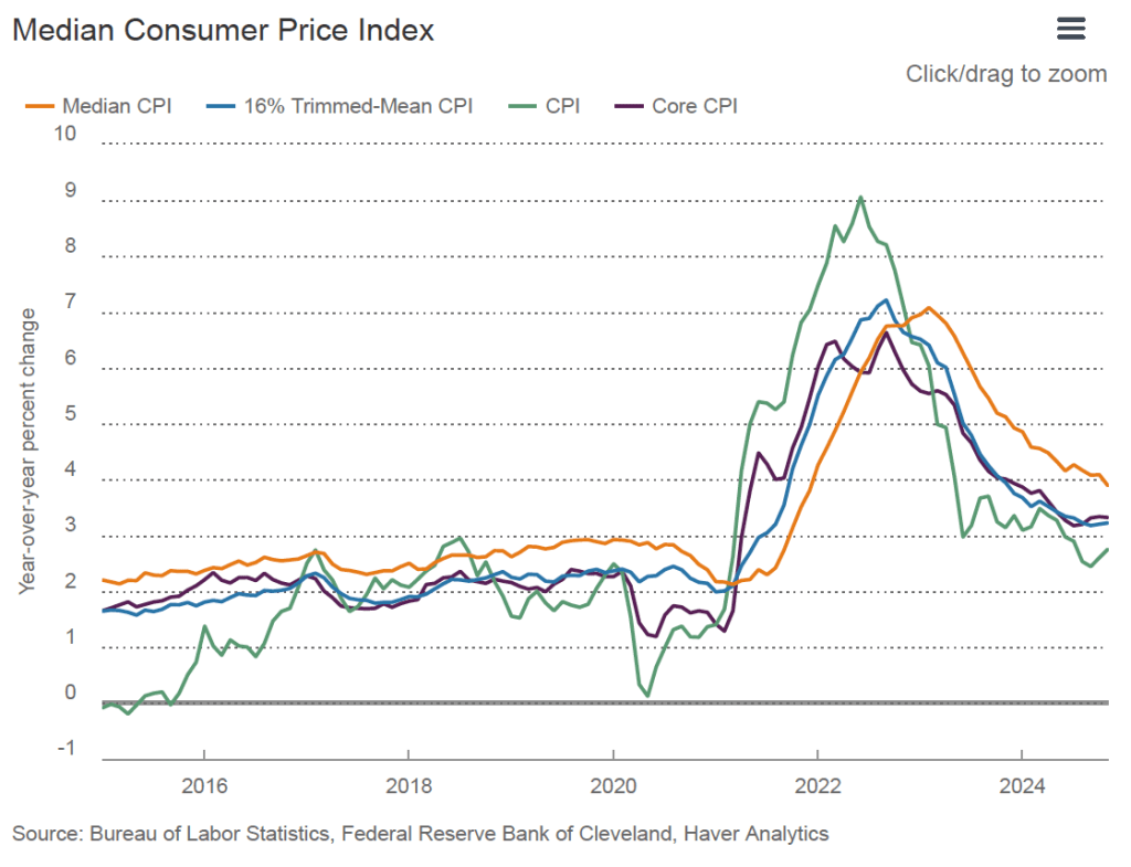 To better estimate of the underlying trend in inflation, some economists look at median inflation and trimmed mean inflation.