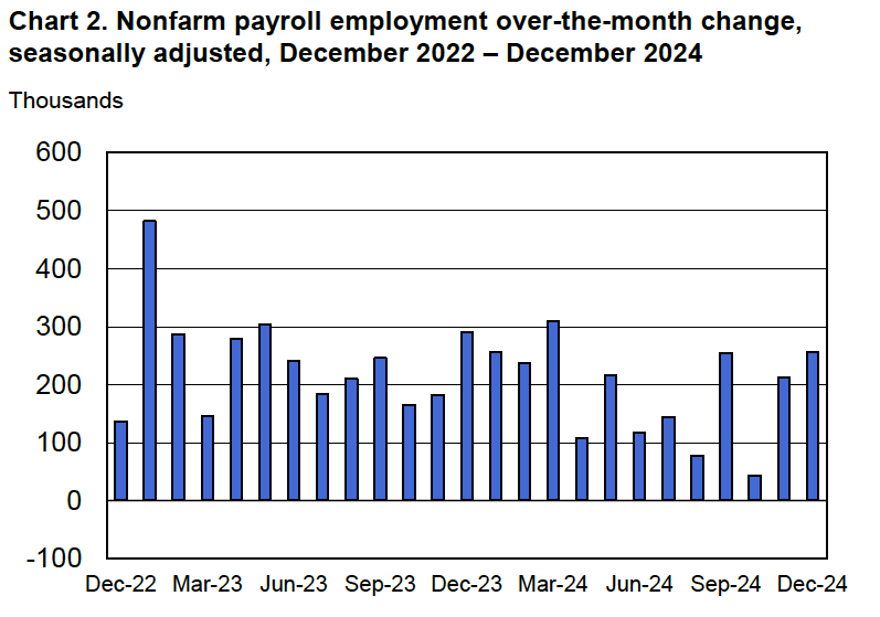 As a result, it seemed likely that the FOMC would leave its target for the federal funds rate unchanged at its next meeting on January 28-29. This conclusion was reinforced this morning (January 10) when the Bureau of Labor Statistics (BLS) released its “Employment Situation” report (often called the “jobs report”) for December. The report indicates that the labor market is stronger than expected.