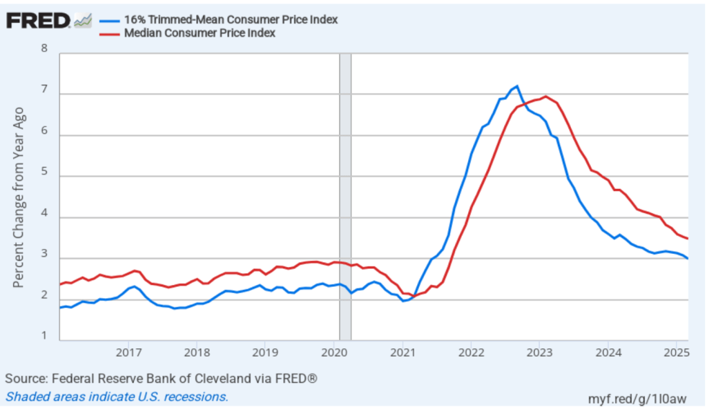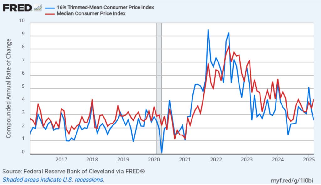 To better estimate the underlying trend in inflation, some economists look at median inflation and trimmed mean inflation.