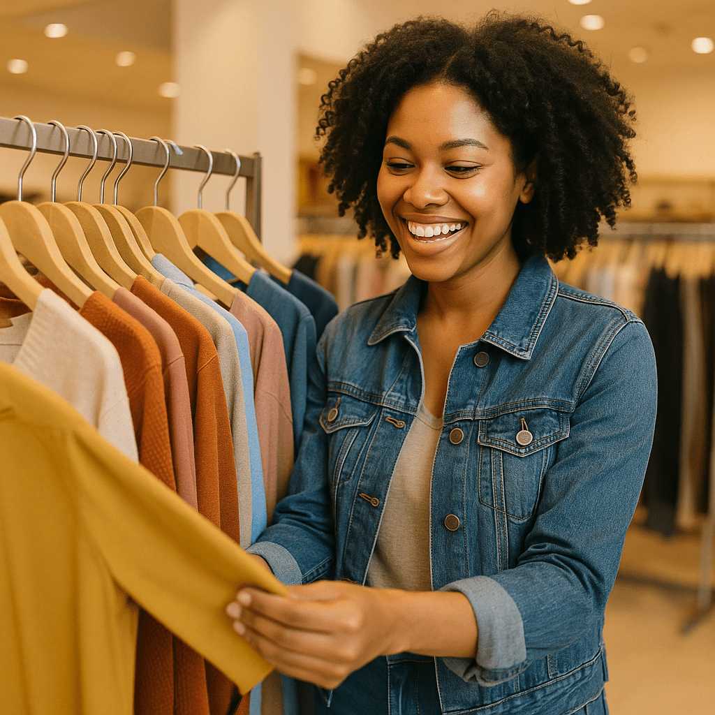 Image generated by ChatGTP-4o of someone shopping for clothes.