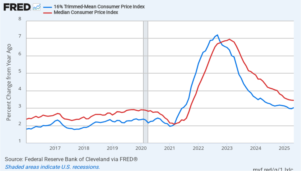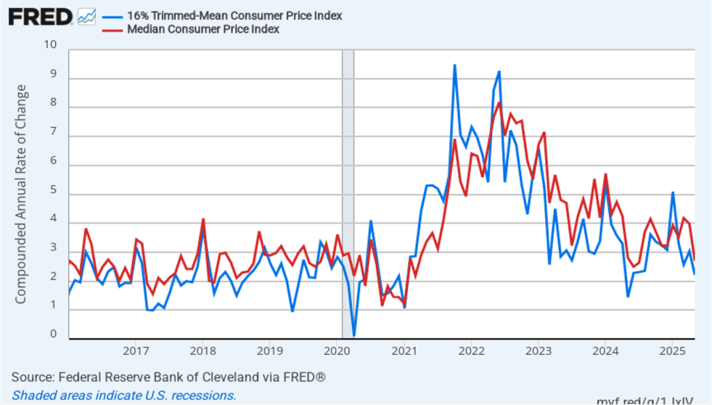 To better estimate the underlying trend in inflation, some economists look at median inflation and trimmed mean inflation.