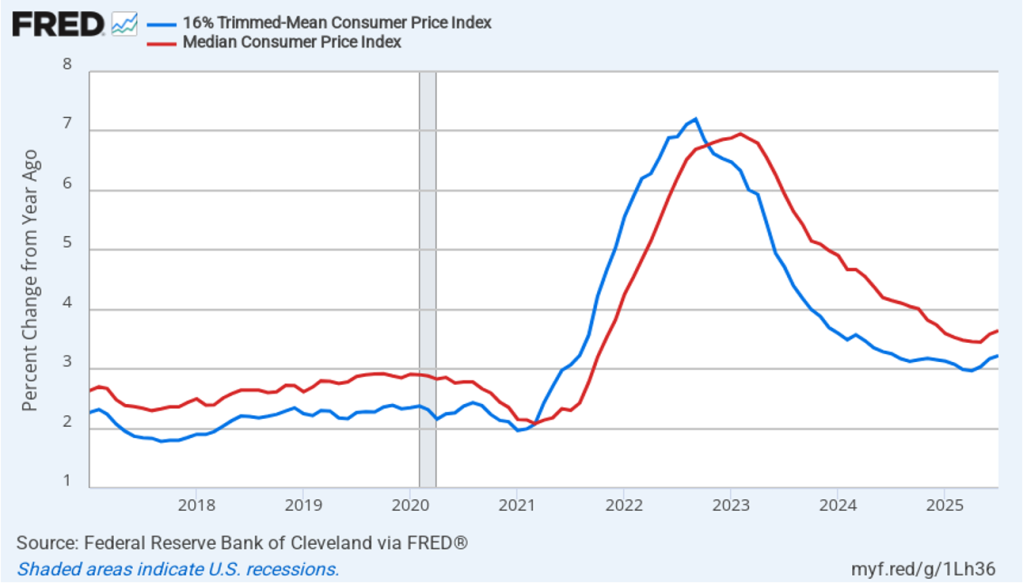To better estimate the underlying trend in inflation, some economists look at median inflation and trimmed mean inflation.