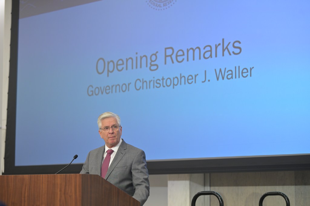 Fed Governor Christopher Wallace on October 21, 2025 at the Fed’s Payment Innovation Conference (photo from federalreserve.gov)